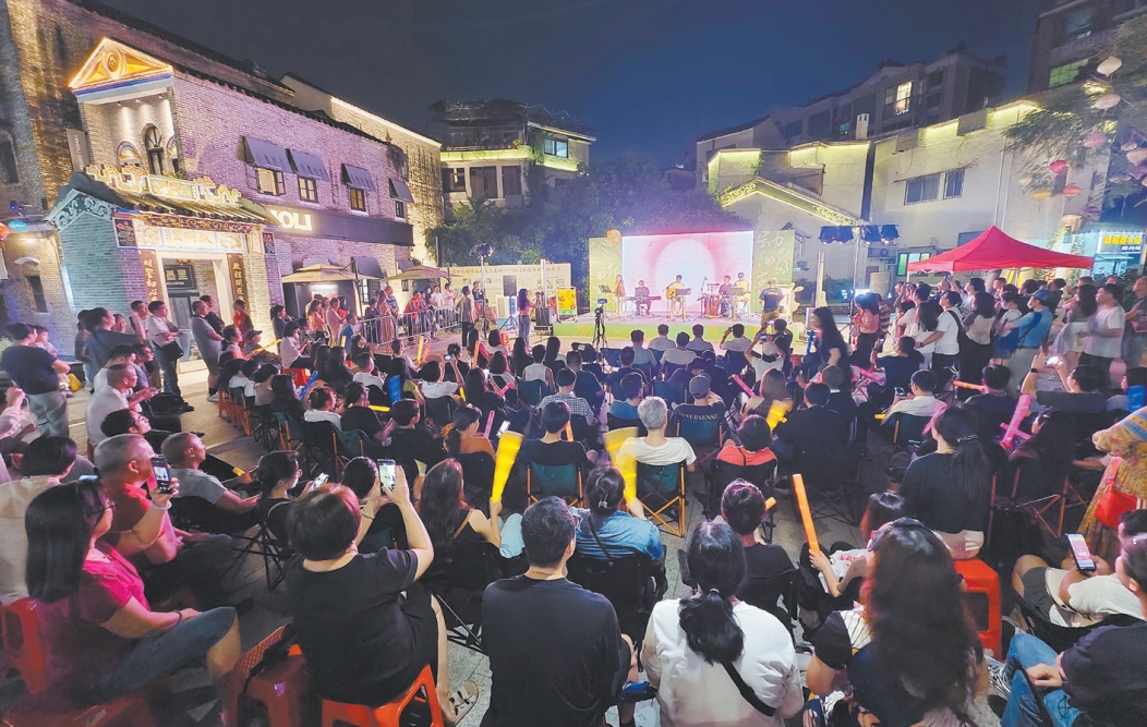 “街頭歌王”羅小羅在蓬江區(qū)啟明里舉行音樂純享夜,吸引了眾多市民前往觀看。