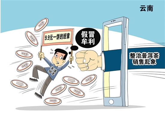 ????云南普洱茶在全國茶葉市場有一定的競爭力,特別是一些“名山”“名寨”茶葉受到市場認(rèn)可,但也成為不法分子假冒牟利的對象。時(shí)下,“9.9元一餅的班章”“10元一餅的冰島”等廣告在網(wǎng)絡(luò)平臺(tái)和部分商店出現(xiàn),影響了普洱茶產(chǎn)業(yè)健康發(fā)展。對此,云南市場監(jiān)督管理部門加大了監(jiān)管打擊力度。??????? ??新華社 發(fā)