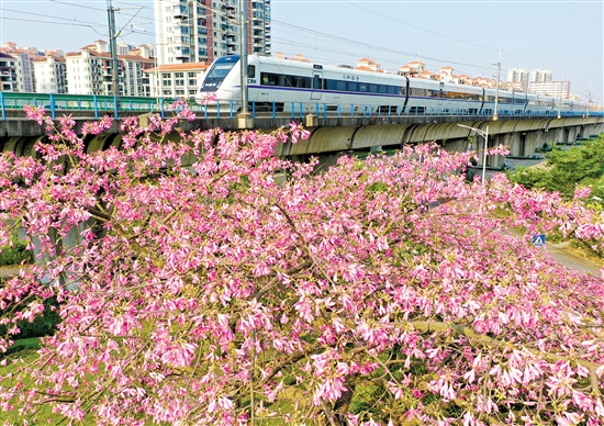 ????美麗異木棉又名“美人樹”“美麗吉貝”“絲木棉”等,是木棉科異木棉屬的落葉大喬木。城管部門工作人員介紹,美麗異木棉是綠化觀賞樹,花期為每年的10月至12月,花朵顏色以粉紅為主。