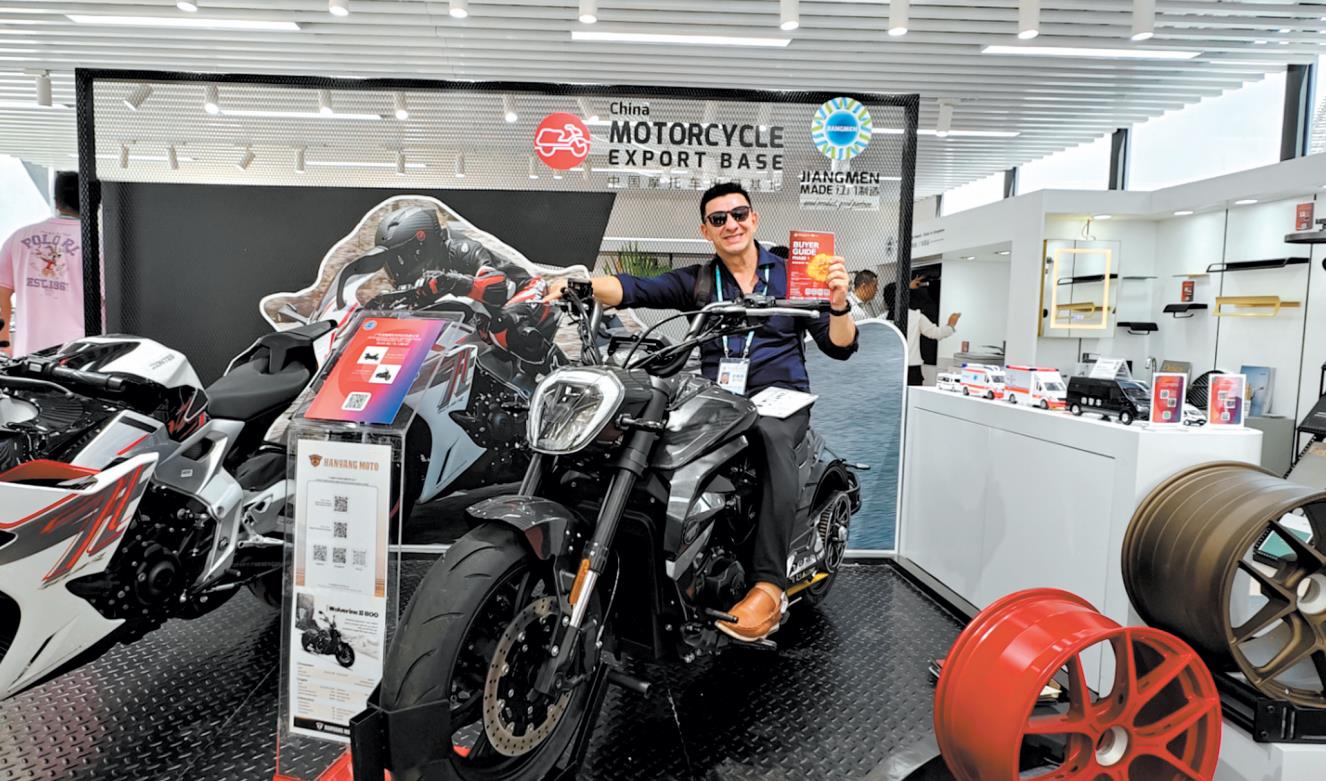 巴西客商Berg對江門產(chǎn)摩托車印象深刻。
