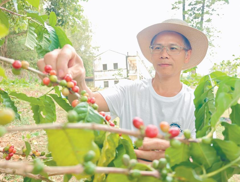 ????昨日,記者在臺(tái)山市端芬鎮(zhèn)廟邊美良村一處咖啡園看到,紅燦燦的咖啡果實(shí)掛滿(mǎn)枝頭。這片咖啡園是由祖籍臺(tái)山的香港人陳健科種植的。6年前,陳健科前往埃塞俄比亞學(xué)習(xí)咖啡種植和處理技術(shù),并帶回300粒高品質(zhì)的咖啡種子在臺(tái)山試種,打造臺(tái)山本土的咖啡種植基地。目前,陳健科在臺(tái)山已成功種植咖啡樹(shù)苗兩萬(wàn)株,最早栽種的一批咖啡樹(shù)已進(jìn)入了產(chǎn)果季節(jié),其栽種的果樹(shù)苗還提供給臺(tái)城、三合鎮(zhèn)、斗山鎮(zhèn)等地的農(nóng)戶(hù)栽種。