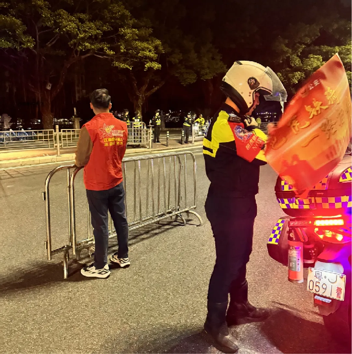 清晨,退役軍人志愿者們滿懷熱情,精神抖擻地出現(xiàn)在指定點(diǎn)位。他們與民警緊密合作,維護(hù)警戒線和標(biāo)志并為選手們熱情地吶喊加油,展現(xiàn)了江海的熱情。這些隨處可見的退役軍人“志愿紅”在提供服務(wù)保障的同時(shí),用行動(dòng)傳遞愛心,充分展現(xiàn)新時(shí)代退役軍人良好形象與高尚品質(zhì),成為了賽道旁最堅(jiān)實(shí)的后盾。
