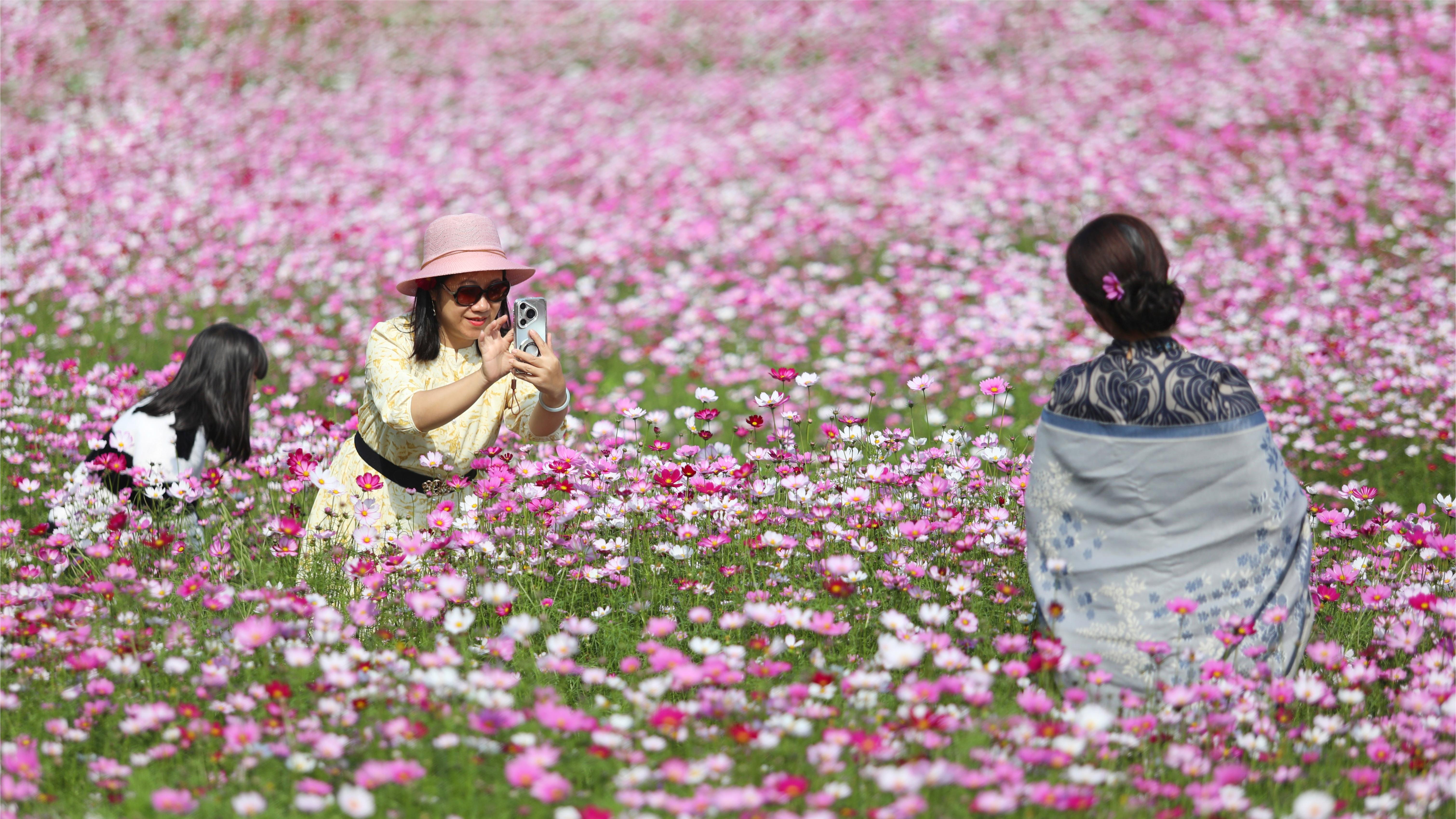 ??? 格?;ㄔ⒁狻懊篮脮r光”和“幸?!保浒邤躺噬钍苁忻裣矏?。連日來,這片花海吸引了眾多游客前來賞花、拍照。游客們精心打扮,漫步花間,盡情享受這美好的時光。攝影愛好者也紛紛拿起相機,記錄下這美麗的畫面。
