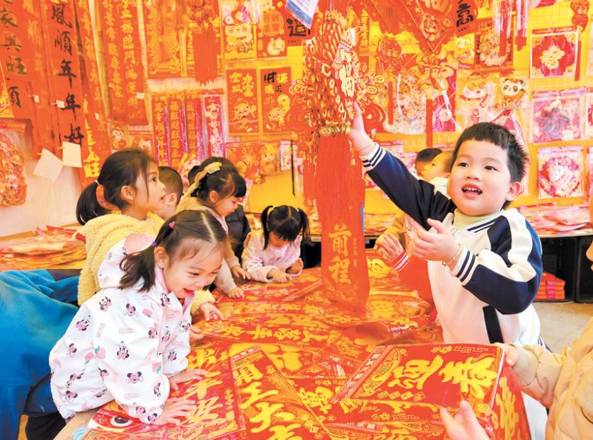 ????1月22日,在蓬江區(qū)金匯廣場迎春花市,一群萌娃吸引了大家的注意。當天,該花市附近嘉福幼兒園的孩子們在老師帶領(lǐng)下逛迎春花市,感受傳統(tǒng)節(jié)日氛圍。小朋友們看年花年桔,還在揮春店“團購”自己喜歡的春節(jié)裝飾畫、飾品,老板也很豪爽地給了這群小顧客大優(yōu)惠。萌娃們在離開時紛紛向老板大喊“謝謝老板”“恭喜發(fā)財”“老板很帥”。