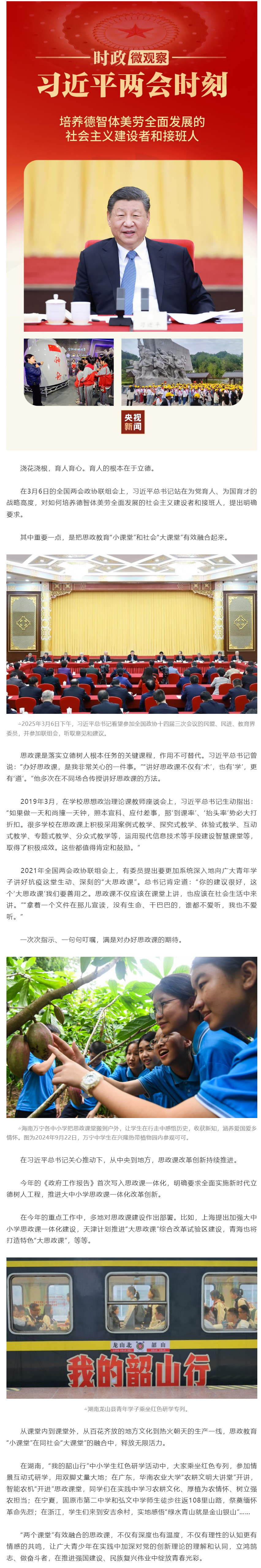 習(xí)近平兩會(huì)時(shí)刻丨思政教育“小課堂”融合社會(huì)“大課堂”