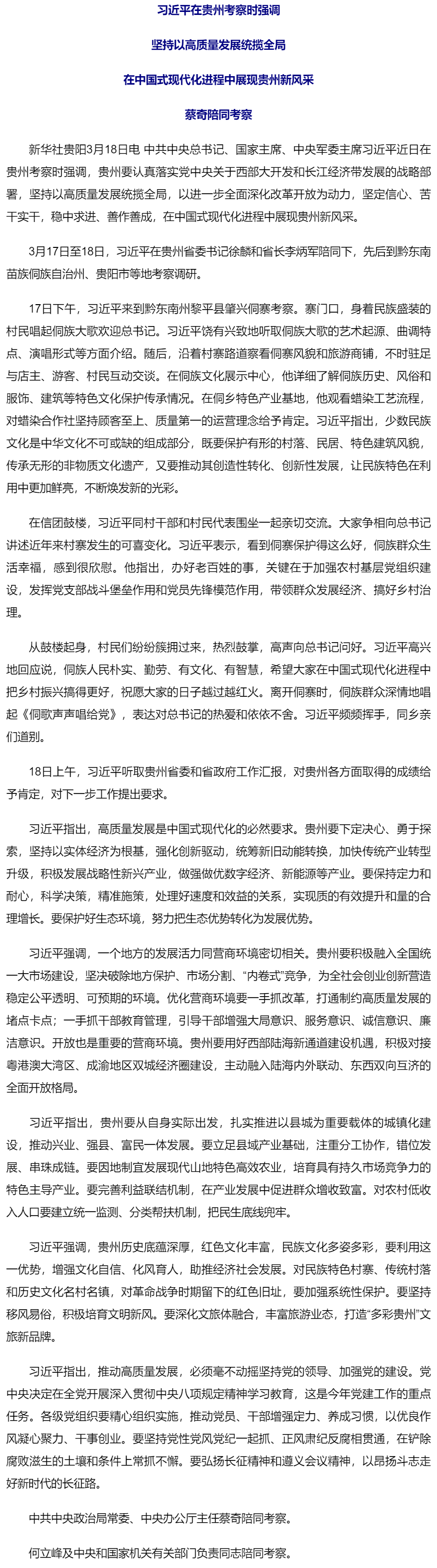 習(xí)近平在貴州考察時強(qiáng)調(diào) 堅持以高質(zhì)量發(fā)展統(tǒng)攬全局 在中國式現(xiàn)代化進(jìn)程中展現(xiàn)貴州新風(fēng)采