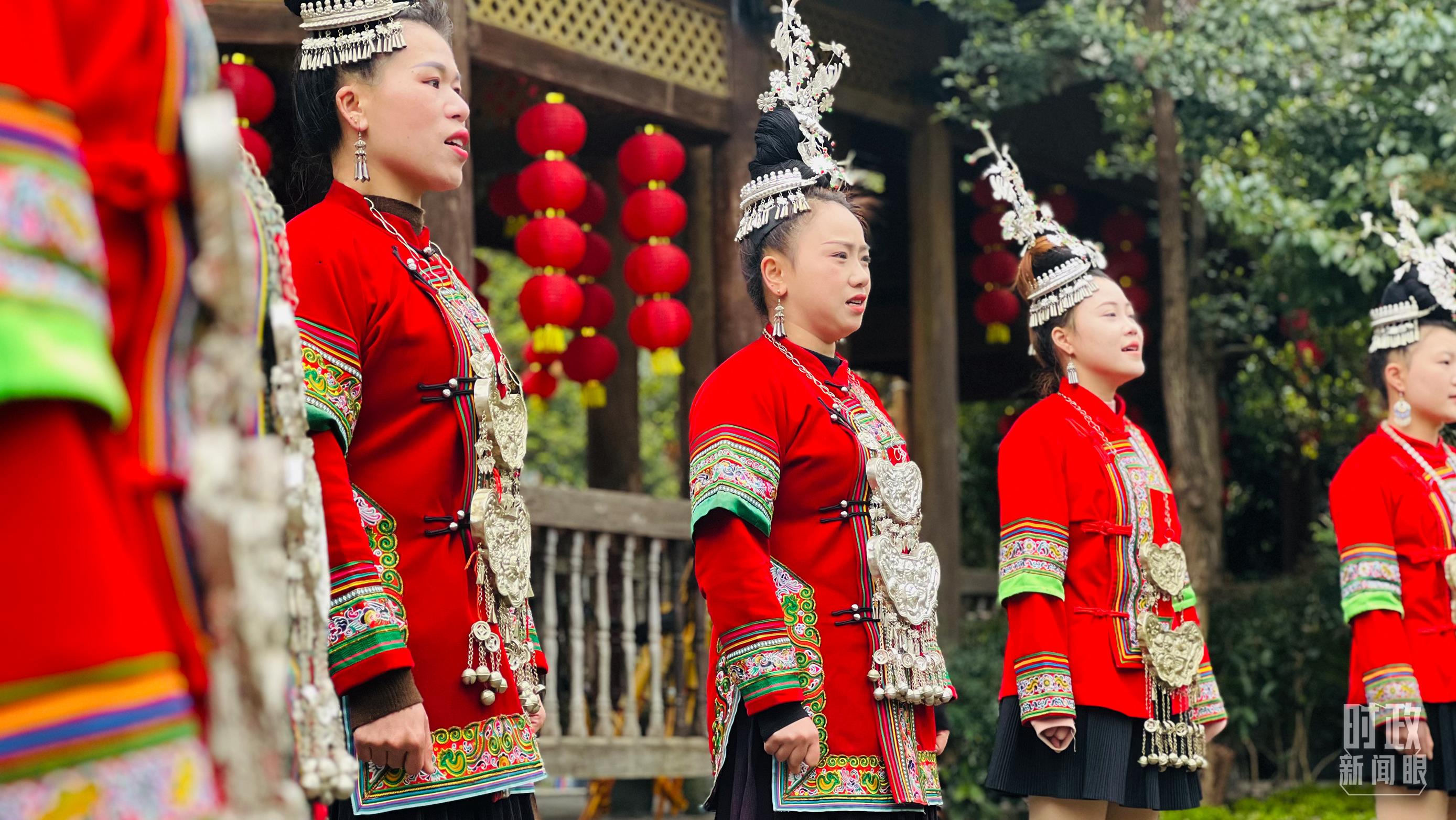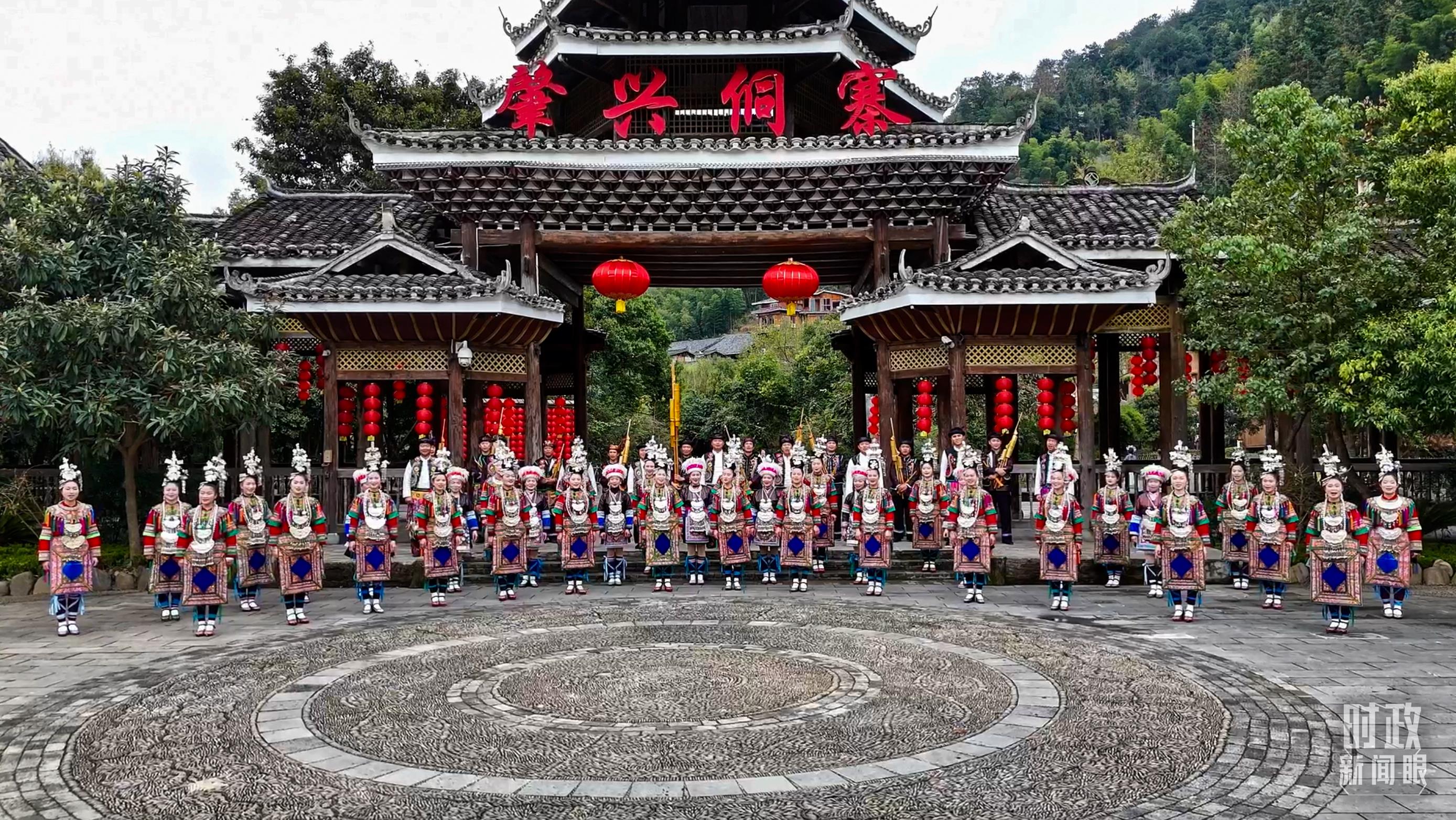 △寨門處,鄉(xiāng)親們身著傳統(tǒng)服飾,唱起侗族大歌,歡迎遠(yuǎn)方的來(lái)客。(總臺(tái)央視記者范凱拍攝)