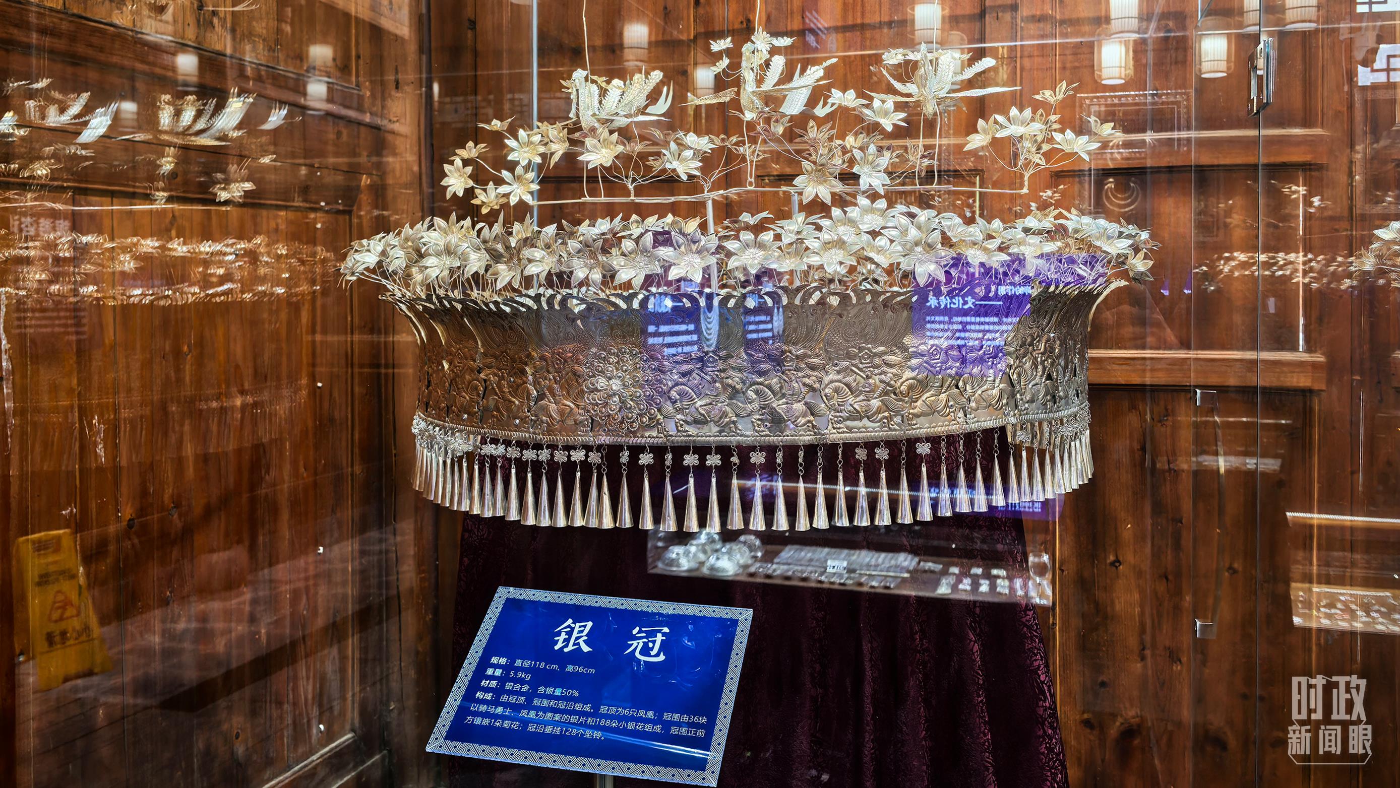 △銀飾是侗族婦女的重要裝飾。圖為展示中心內(nèi)的銀冠。(總臺(tái)央視記者鄂介甫拍攝)