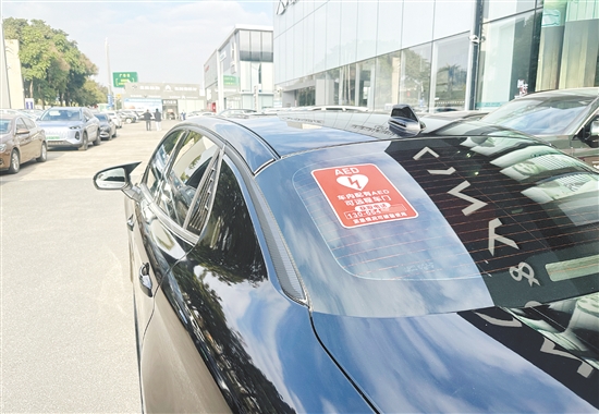 ????“車內(nèi)配有AED,緊急情況可破窗使用?!弊蛉?,記者在江門偶然捕捉到這樣一幕:一輛正在行駛的私家車,其后方醒目地貼著AED(自動體外除顫器)的標(biāo)識,車輛還特別標(biāo)注了提示。