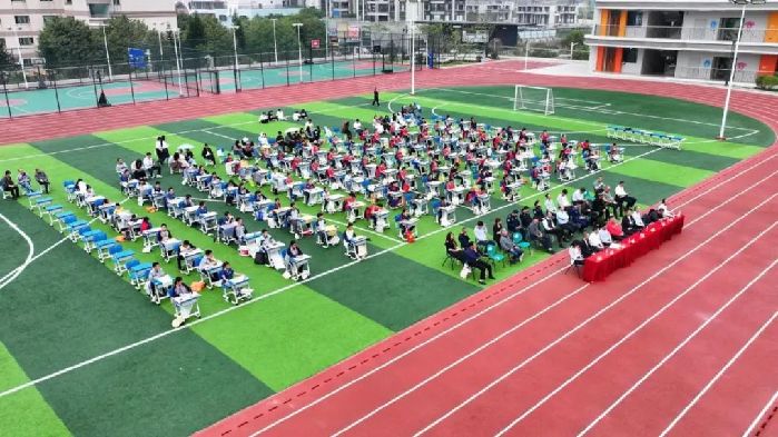 4月8日,江海區(qū)高新第一小學(xué)運動場化身為紅色文化與書法藝術(shù)的“雙創(chuàng)”舞臺,由江海區(qū)退役軍人事務(wù)局、區(qū)教育局聯(lián)合主辦的2025年第一屆“廣東新華”杯中小學(xué)生書法比賽在此火熱開賽?;顒右浴澳嵓t色,傳承革命薪火”為主題,將革命精神融入傳統(tǒng)書法創(chuàng)作,吸引百名學(xué)子現(xiàn)場揮毫和9名退役軍人書法名家傾情助陣,更有“AI+書法”黑科技驚艷亮相,為這場文化盛宴注入全新活力。