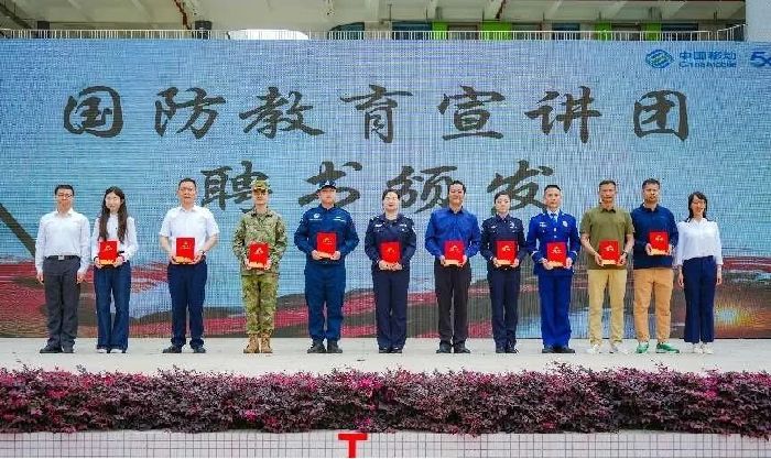 最后一位選手擱筆收勢,頒獎環(huán)節(jié)在如雷掌聲中拉開帷幕。獲獎作品字跡風(fēng)格各異,但無一不在橫豎撇捺間流露著對革命精神的深刻理解與濃濃的家國情懷,此刻的頒獎臺成為了精神傳承的紐帶,將筆墨間的敬意與新時代少年的擔(dān)當(dāng)緊緊相連,讓屬于書法的榮譽時刻,更成為屬于紅色精神的閃耀時刻。舞臺帷幕徐徐升起新篇章,由區(qū)退役軍人事務(wù)局、區(qū)教育局聯(lián)合成立的江海區(qū)國防教育宣講團正式亮相,副區(qū)長丑繼明為12名宣講團成員頒發(fā)證書,在撇捺起落的韻律中,將國防教育的星火燃成照亮少年心魄的朝陽。