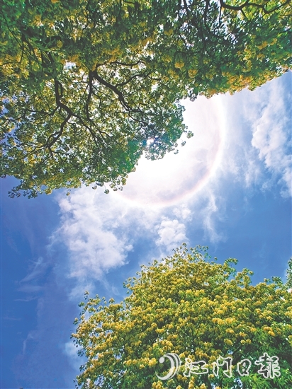 ????記者提醒大家,日暈雖美,但不要長時(shí)間用肉眼觀看,以免灼傷眼睛。