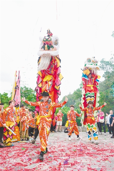 ????江門日?qǐng)?bào)訊?(文/圖?記者/羅霈?通訊員/周頌雯)?醒獅舞動(dòng),鑼鼓喧天,4月19日,棠下鎮(zhèn)沙富村上演“武術(shù)大會(huì)”,來自香港、廣西、廣東等地的1000余名周家拳傳人齊聚五虎紀(jì)念館,以醒獅擂鼓之禮拜祭祖師。這既是一次對(duì)先輩的追思之行,也是一場(chǎng)包容開放的文化交流活動(dòng)。