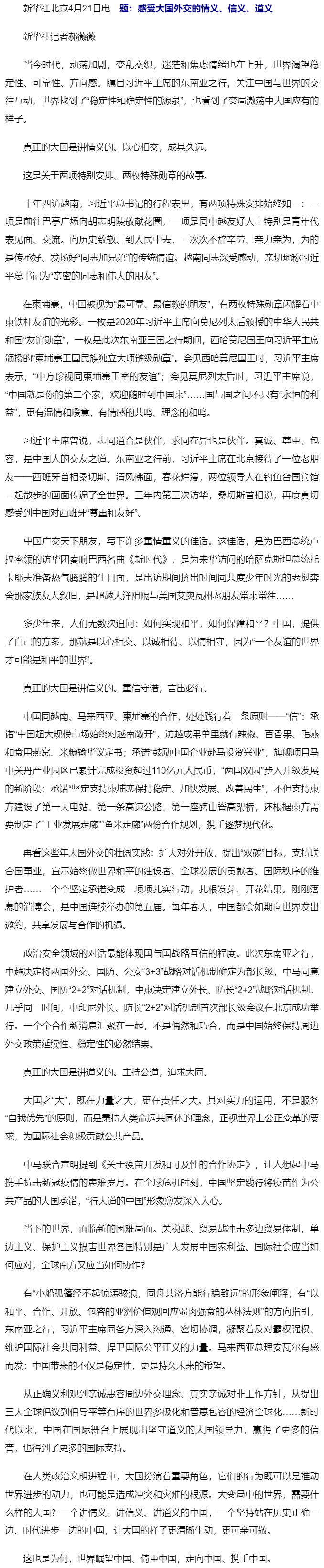 記者手記|感受大國外交的情義、信義、道義