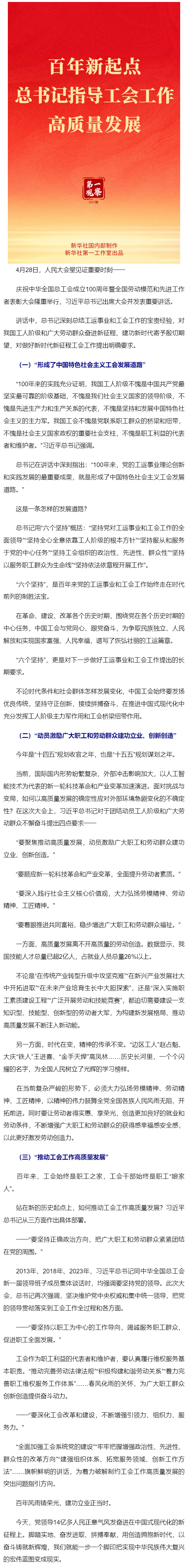 第一觀察|百年新起點(diǎn),總書(shū)記指導(dǎo)工會(huì)工作高質(zhì)量發(fā)展