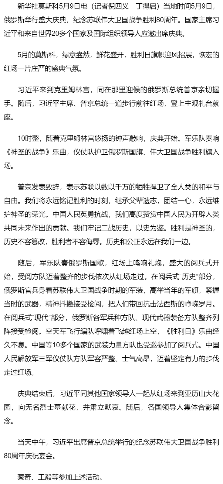 習近平出席俄羅斯紀念蘇聯(lián)偉大衛(wèi)國戰(zhàn)爭勝利80周年慶典