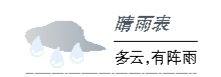 ????11日,多云,有陣雨或雷陣雨,25-33℃;