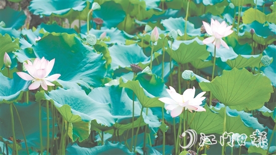 ????江門日報訊 (文/圖 記者/何榕 陳嬋)時下,外海街道茶庵古寺里的大片荷花開始綻放,吸引了不少市民游客前往觀賞、打卡。????記者昨日經(jīng)茶庵古寺門坊,沿蜿蜒的石板路前行,只見荷花池中,荷葉田田,層層疊疊,粉色的、白色的荷花在綠色荷葉間亭亭玉立,與古寺的飛檐斗拱相互映襯,美麗如畫。