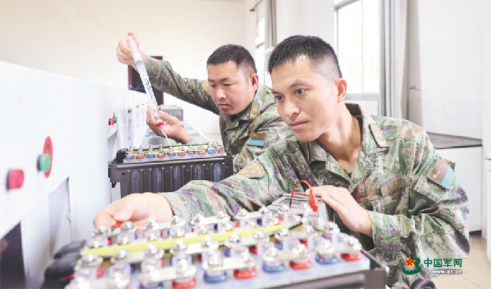 南部戰(zhàn)區(qū)空軍某場站官兵進行蓄電池保養(yǎng)。呂世強攝