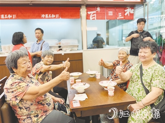 ????沖蔞三和云吞館(萬(wàn)達(dá)店)成為臺(tái)山市長(zhǎng)者飯?zhí)么壬浦忘c(diǎn),更是臺(tái)山市構(gòu)建多元化養(yǎng)老服務(wù)體系的生動(dòng)實(shí)踐。通過(guò)“政府搭臺(tái)、企業(yè)參與、金融助力、社區(qū)協(xié)同”的多方聯(lián)動(dòng)機(jī)制,目前,臺(tái)山全市已實(shí)現(xiàn)17個(gè)鎮(zhèn)(街)長(zhǎng)者飯?zhí)眉爸忘c(diǎn)全覆蓋,日均服務(wù)450人次,2025年以來(lái)累計(jì)實(shí)現(xiàn)助餐服務(wù)4.5萬(wàn)人次。