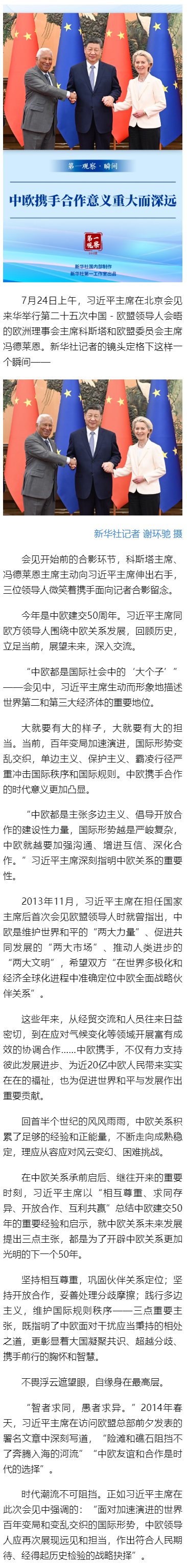 第一觀察·瞬間|中歐攜手合作意義重大而深遠(yuǎn)