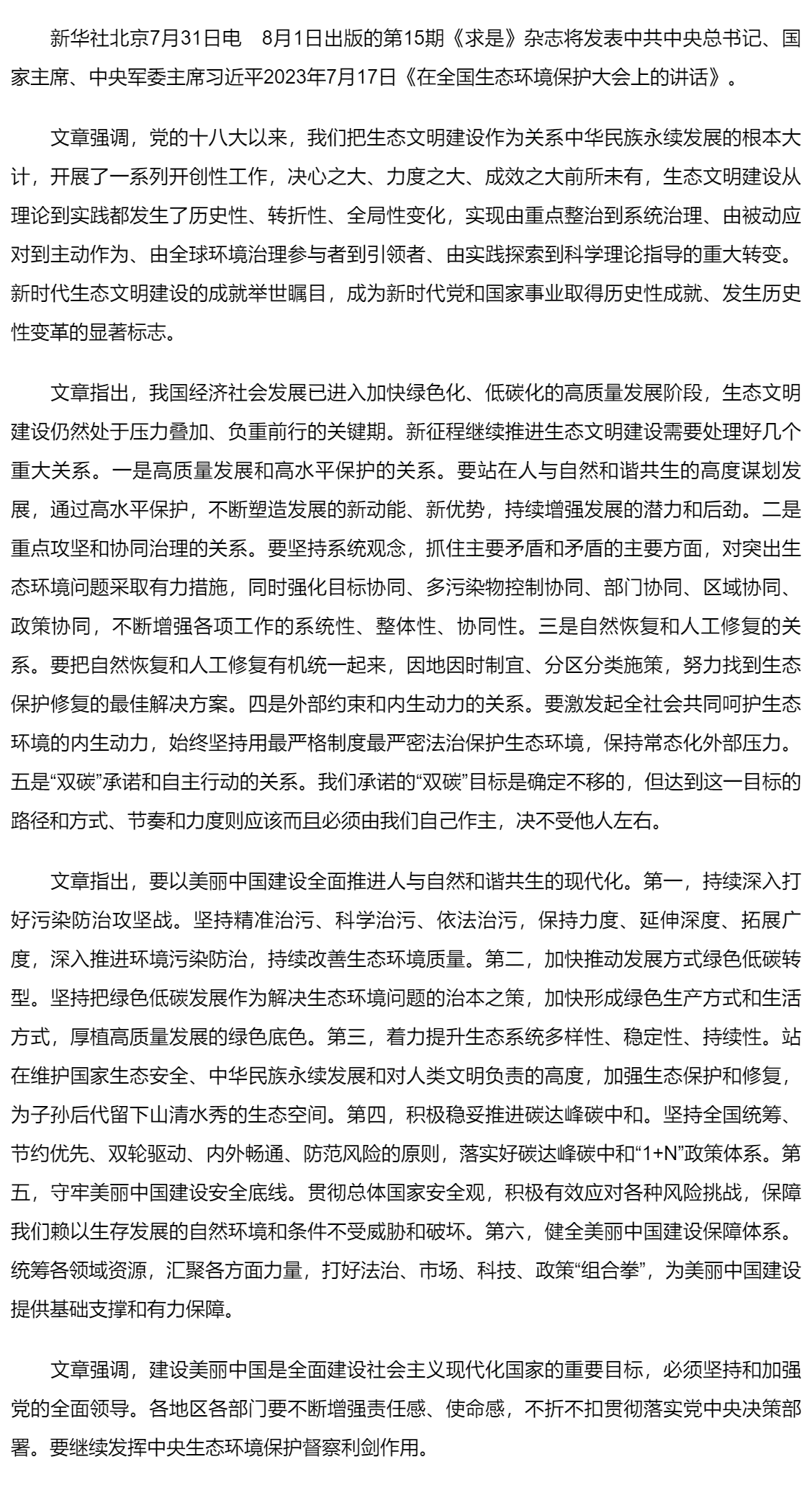 《求是》雜志發(fā)表習(xí)近平總書記重要文章《在全國生態(tài)環(huán)境保護大會上的講話》