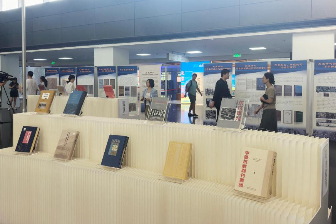 ??展覽融合展板、實物、掃碼查閱“東京審判”“日本細菌戰(zhàn)”資源庫檔案等多種展示方式呈現(xiàn)抗戰(zhàn)歷程,并設置抗戰(zhàn)主題紀念章、抗戰(zhàn)文獻主題藏書票等特色互動環(huán)節(jié),觀眾可以在留言墻寫下觀展感悟。除國家圖書館主展外,河北、江蘇、浙江、湖北四省的7家圖書館同步聯(lián)展。