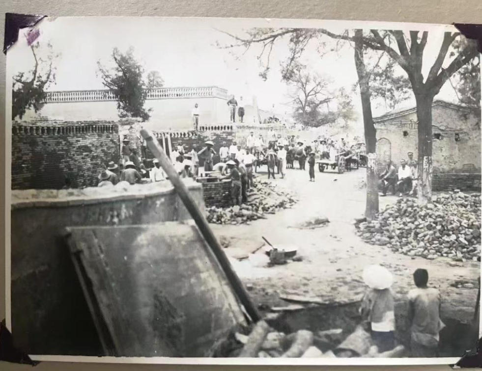 ??相冊(cè)里的照片:1939年日軍逼迫河北固安群眾修筑碉堡。(固安縣委辦公室供圖)