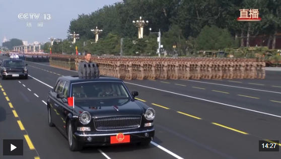在雄壯的軍樂聲中,習近平乘車沿著寬闊的長安街,依次檢閱徒步方隊和裝備方隊。