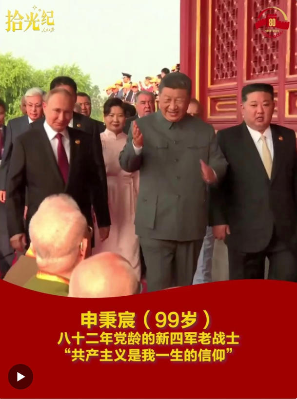 ??日程:出席紀(jì)念中國人民抗日戰(zhàn)爭暨世界反法西斯戰(zhàn)爭勝利80周年大會,習(xí)近平總書記同抗戰(zhàn)老戰(zhàn)士老同志親切握手