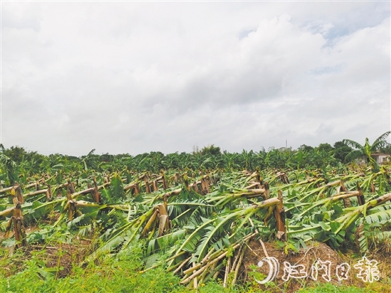 恩平市某香蕉種植場臺風(fēng)過后景象,當(dāng)前正在加緊恢復(fù)生產(chǎn)。