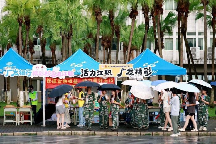 迎新晚會現(xiàn)場,江門分行以“活力江職,廣發(fā)精彩”為主題,將品牌形象融入宣講,將金融普及教育送到師生身邊,在現(xiàn)場設(shè)置多個互動宣傳區(qū)域,通過視頻播放、發(fā)放宣傳手冊、現(xiàn)場答疑、有獎互動等形式,為師生們帶來涵蓋消費者權(quán)益保護、反詐防騙、存款保險、公積金政策及反洗錢等實用金融知識,用金融央企成員單位的社會責任擔當為高校學(xué)子筑牢金融安全防線。