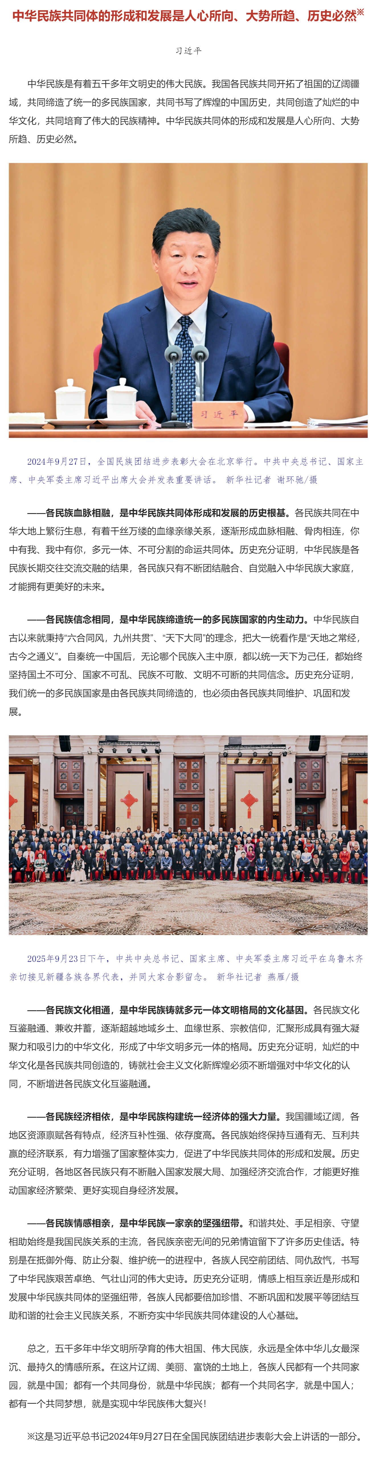 中華民族共同體的形成和發(fā)展是人心所向、大勢所趨、歷史必然