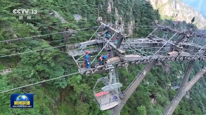 在黃山風(fēng)景區(qū),索道檢修工不間斷巡視云端索道,確保索道運(yùn)行正常。環(huán)衛(wèi)工人全員在崗,投入到各路段和懸崖外圍保潔工作。