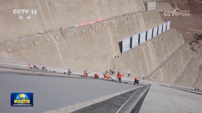 新疆大石峽水利樞紐工程現(xiàn)場,工人們在相當(dāng)于80層樓高的混凝土石壩上作業(yè)。這項(xiàng)民生工程建成后,年生產(chǎn)清潔電能可滿足65萬戶家庭一年的用電需求。