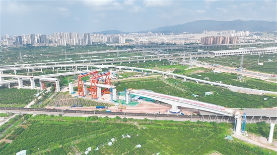 深江高鐵北起深圳西麗站,南至江門站,正線全長(zhǎng)約116公里,其中深圳西麗至廣州南沙段設(shè)計(jì)時(shí)速200公里,廣州南沙至江門段設(shè)計(jì)時(shí)速250公里。中鐵二十五局承擔(dān)了深江高鐵12標(biāo)13.41公里正線、545孔箱梁制運(yùn)架以及全線鋪軌等施工任務(wù)。