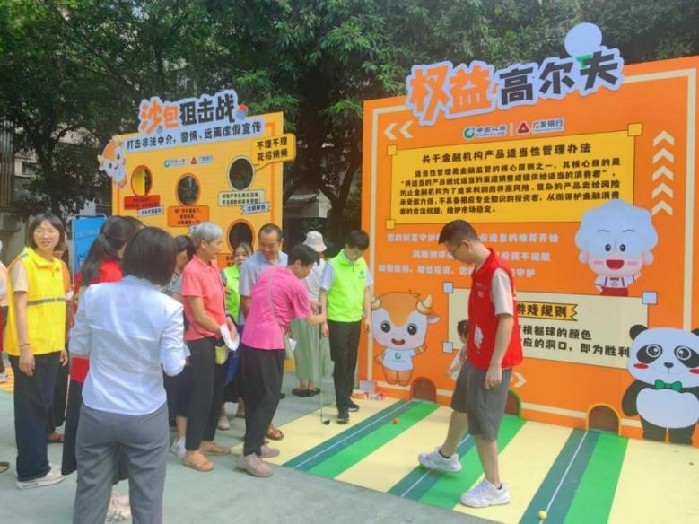 活動現(xiàn)場還精心設(shè)置了三大體驗區(qū),構(gòu)成了一個集教育、互動、服務(wù)于一體的迷你創(chuàng)意市集。“權(quán)益高爾夫”“沙包狙擊戰(zhàn)”兩大游戲吸引眾多銀齡客戶參與。在“權(quán)益高爾夫”中,參與者通過推桿進洞學(xué)習(xí)金融消費者八大權(quán)益;“沙包狙擊”則以擊打“非法集資”“高息誘惑”等標靶的方式,幫助老年人識別詐騙套路,現(xiàn)場歡聲笑語不斷。