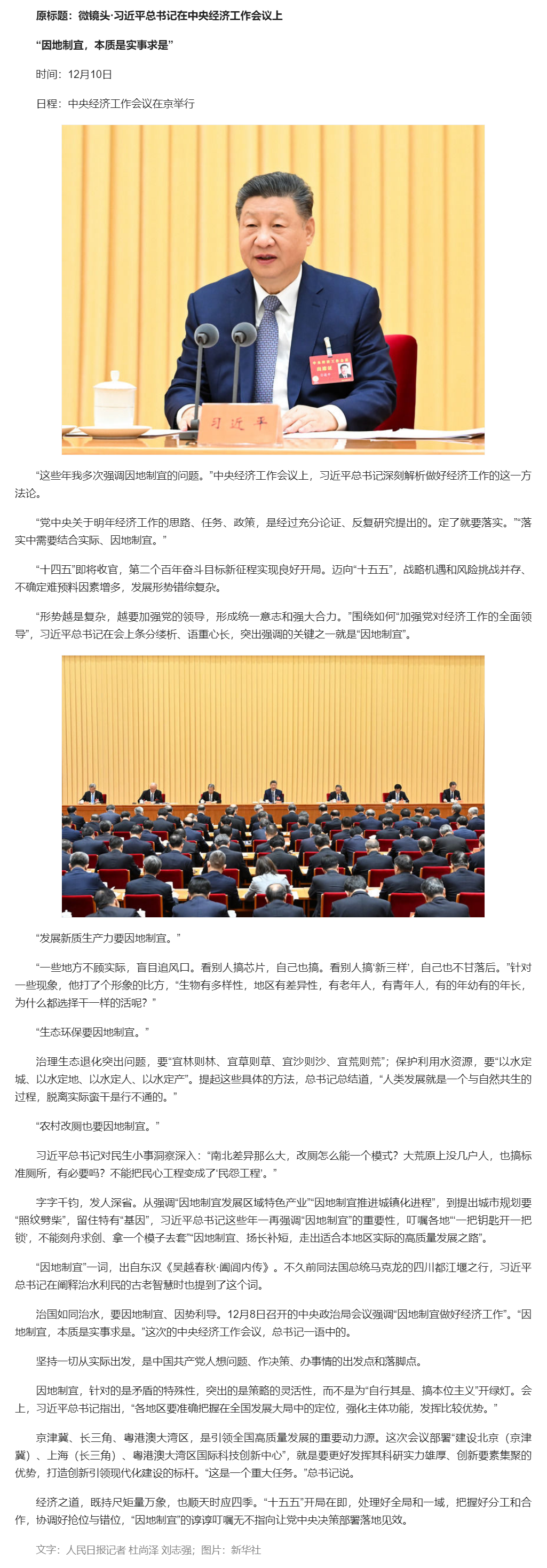 微鏡頭·習(xí)近平總書記在中央經(jīng)濟(jì)工作會議上|“因地制宜,本質(zhì)是實事求是”