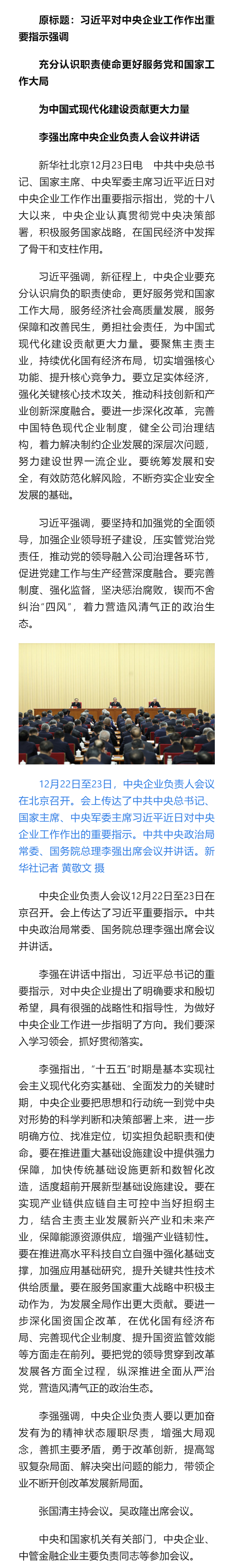 習(xí)近平對中央企業(yè)工作作出重要指示