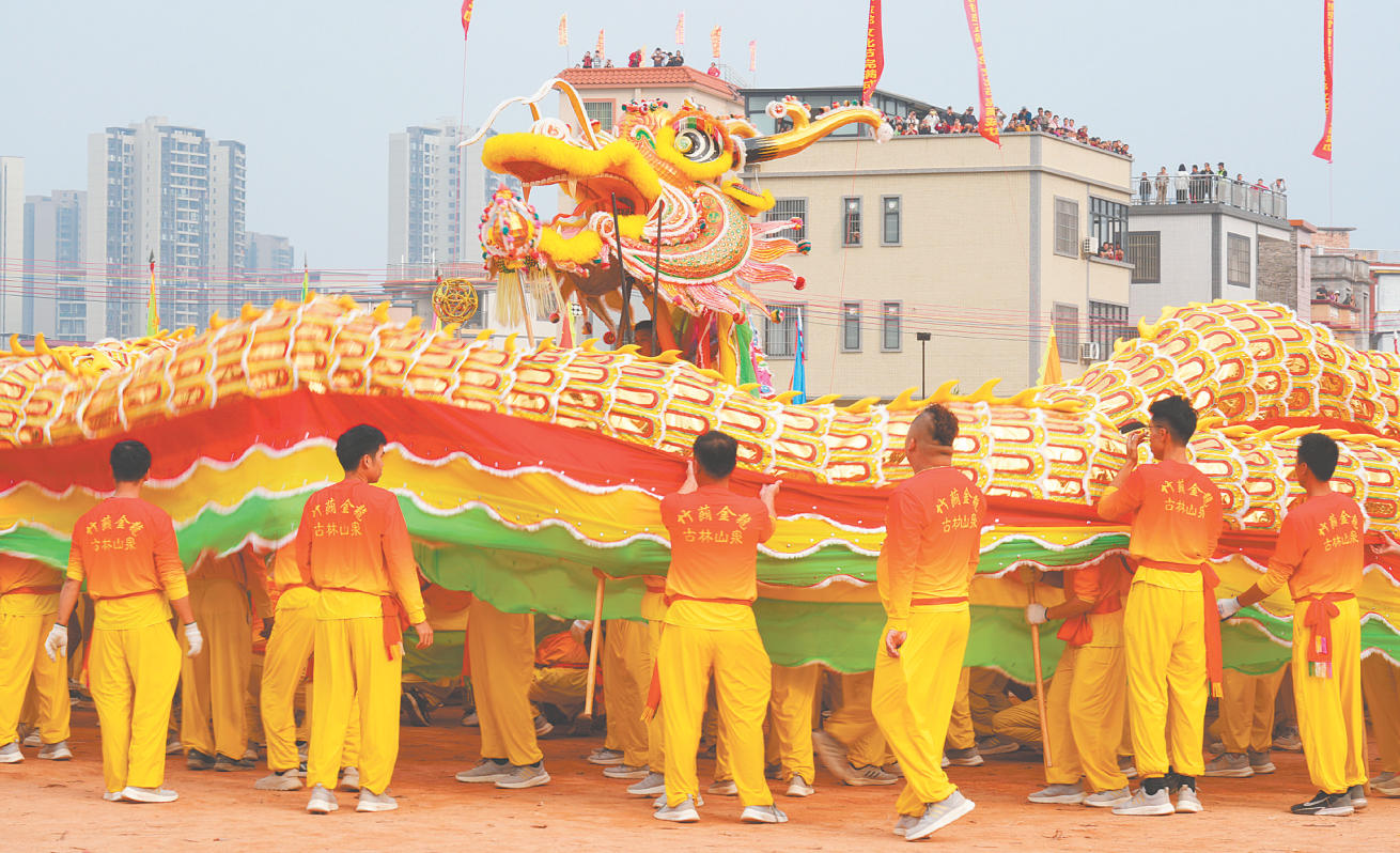 在2025年竹蓢第五屆金龍文化節(jié)現(xiàn)場,一條百米長金龍全身金鱗閃閃,璀璨耀目。 陳佩筠 攝
