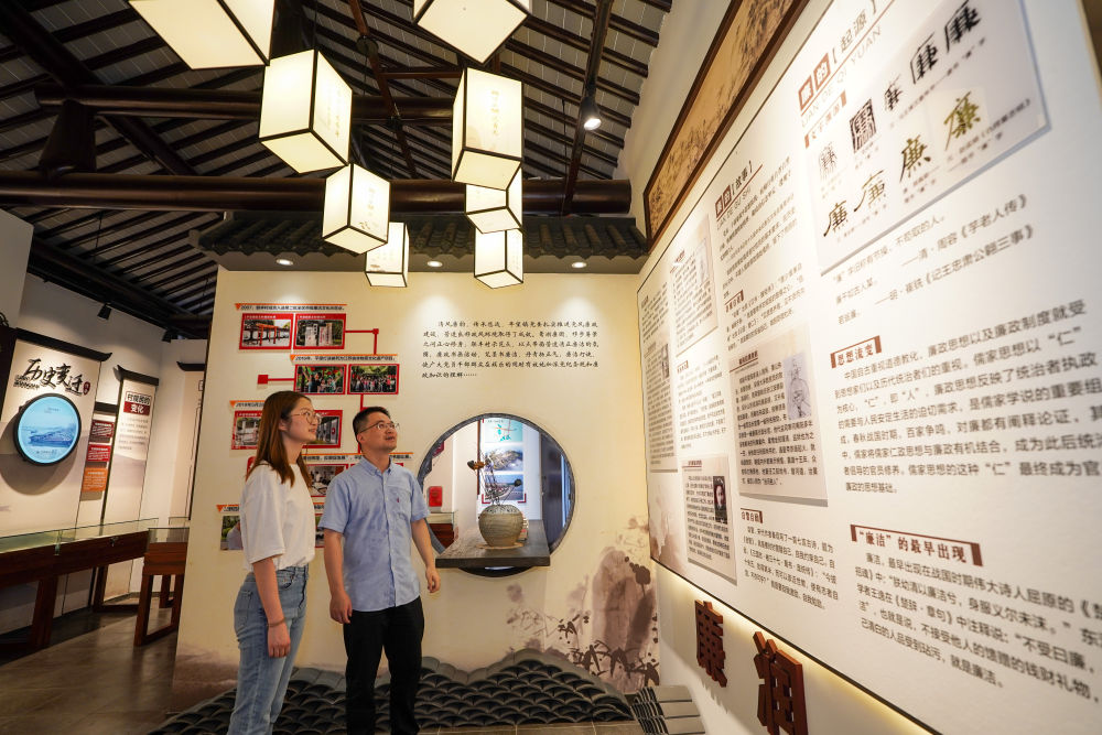 ??2024年7月4日,參觀者在蘇州市吳江區(qū)平望鎮(zhèn)廉潔教育基地鶯湖廉園內(nèi)參觀。新華社記者 李博 攝