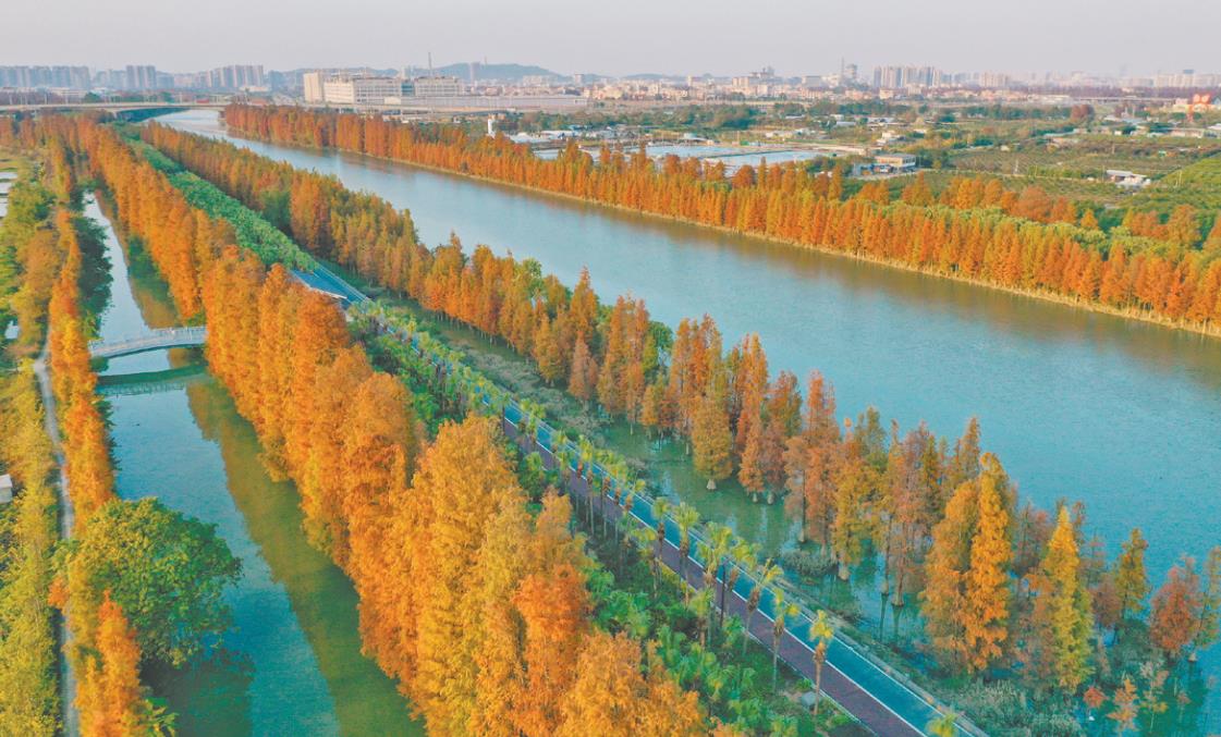 ????冬日的江海區(qū),禮樂綠廊碧道宛如畫卷。河邊落羽杉紅意蔓延,熱情不減,將整片林子染得斑斕。漫步林中碧道,落葉鋪就絨毯,枝干高聳交織成絢麗穹頂,陽光灑下,光影斑駁,如夢(mèng)似幻。羽狀葉子如同跳舞的蝴蝶,紅、橙、黃、綠交織。微風(fēng)拂過,林聲如樂,河面漣漪蕩漾。????近年來,江海區(qū)累計(jì)建成了城央綠廊、鄉(xiāng)村綠廊和西江碧道外海段等碧道,并成功打造都市農(nóng)業(yè)特色生態(tài)廊道,激發(fā)鄉(xiāng)村文旅新活力,為“百千萬工程”添新彩。