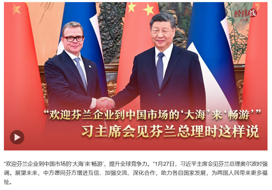 經(jīng)緯線·“歡迎芬蘭企業(yè)到中國市場的‘大?!瘉怼畷秤巍?,習(xí)主席會見芬蘭總理時這樣說