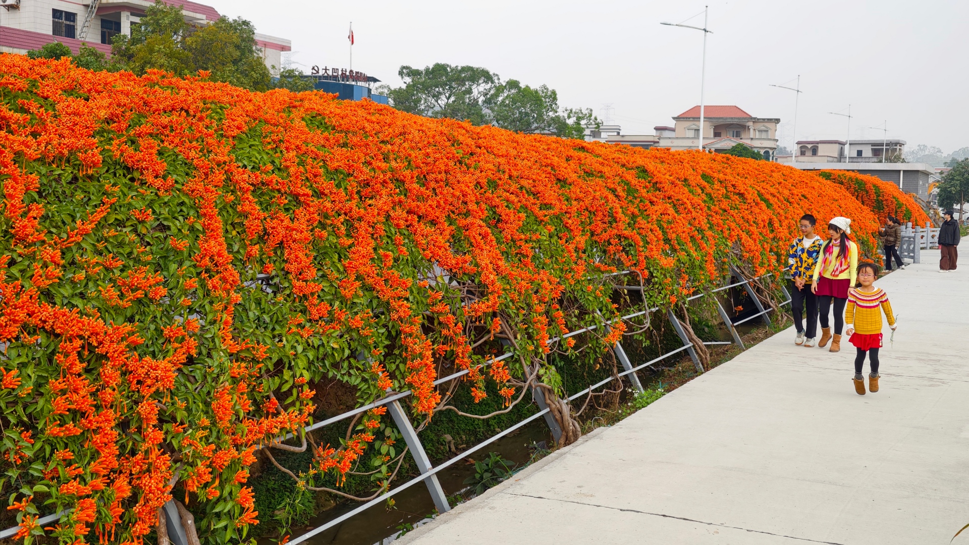 據(jù)共和鎮(zhèn)大凹村負責人介紹,炮仗花長廊是2021年進行鄉(xiāng)村振興建設(shè)時種植的,共1000米長,花廊結(jié)合村里的關(guān)帝廟古建筑、關(guān)帝廟文化廣場,旨在打造鄉(xiāng)村文旅打卡點,助力“百千萬工程”。