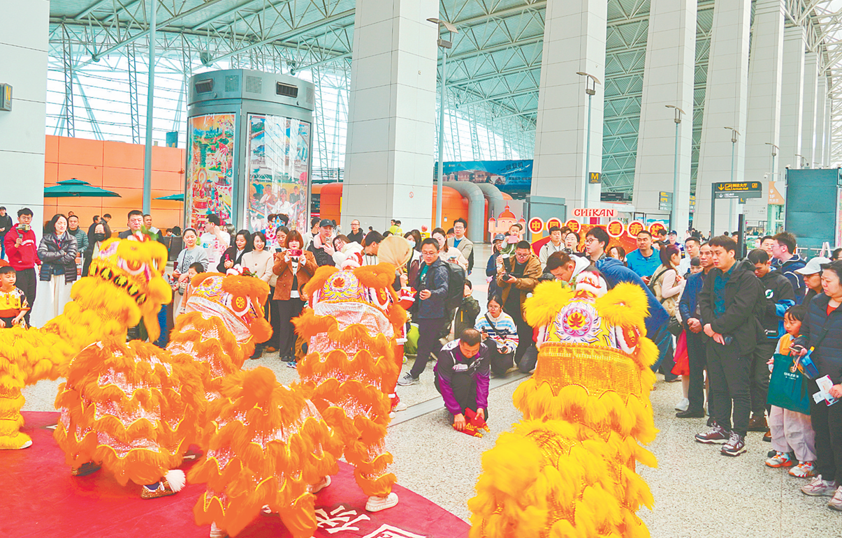 ????□文/圖 江門日報記者 李銀換????“咚咚咚……”清脆的膠凳敲擊聲劃破廣州白云國際機場(以下簡稱“白云機場”)T1航站樓的喧囂,近日,“請到江門過大年”快閃活動在此上演。鶴山小醒獅表演、民國風(fēng)情演藝、國家級非遺代表性傳承人送“福”……江門以一場融合僑鄉(xiāng)文化與新春元素的沉浸式體驗,向海內(nèi)外游客發(fā)出新春文旅邀請函,提前解鎖“江門三點三精彩之旅”的獨特魅力。