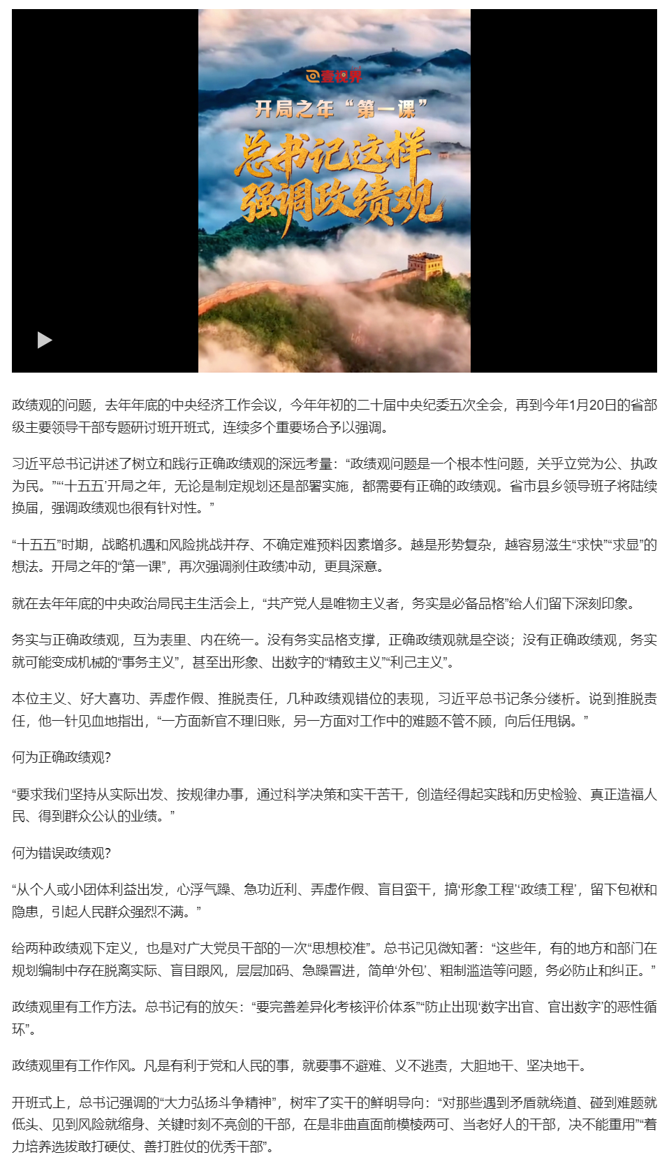 壹視界·微視頻 | 開局之年“第一課”,總書記這樣強調政績觀