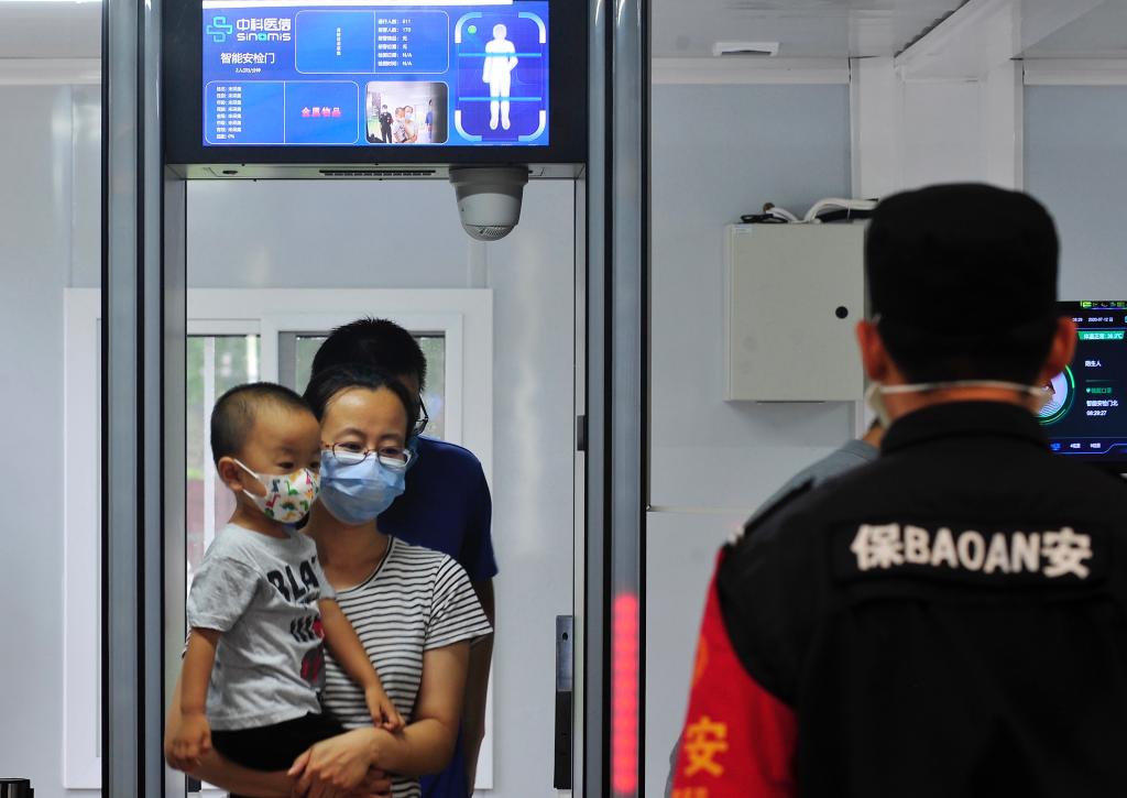 2020年7月12日,人們走過(guò)北京兒童醫(yī)院智能AI安檢門。新華社發(fā)(牛宏超 攝)