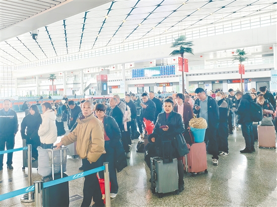 春運首日,旅客在江門站有序候車。