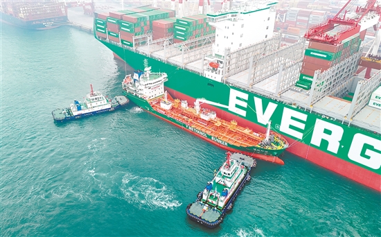 山東港口青島港完成首批綠色甲醇“船對(duì)船”加注