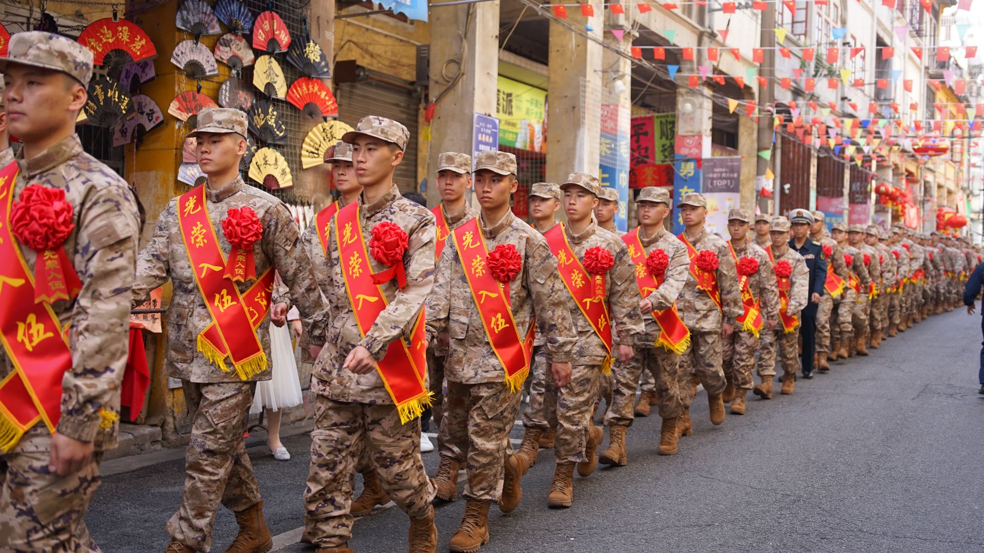 預(yù)定新兵到長堤歷史文化街區(qū)巡游,精神抖擻。